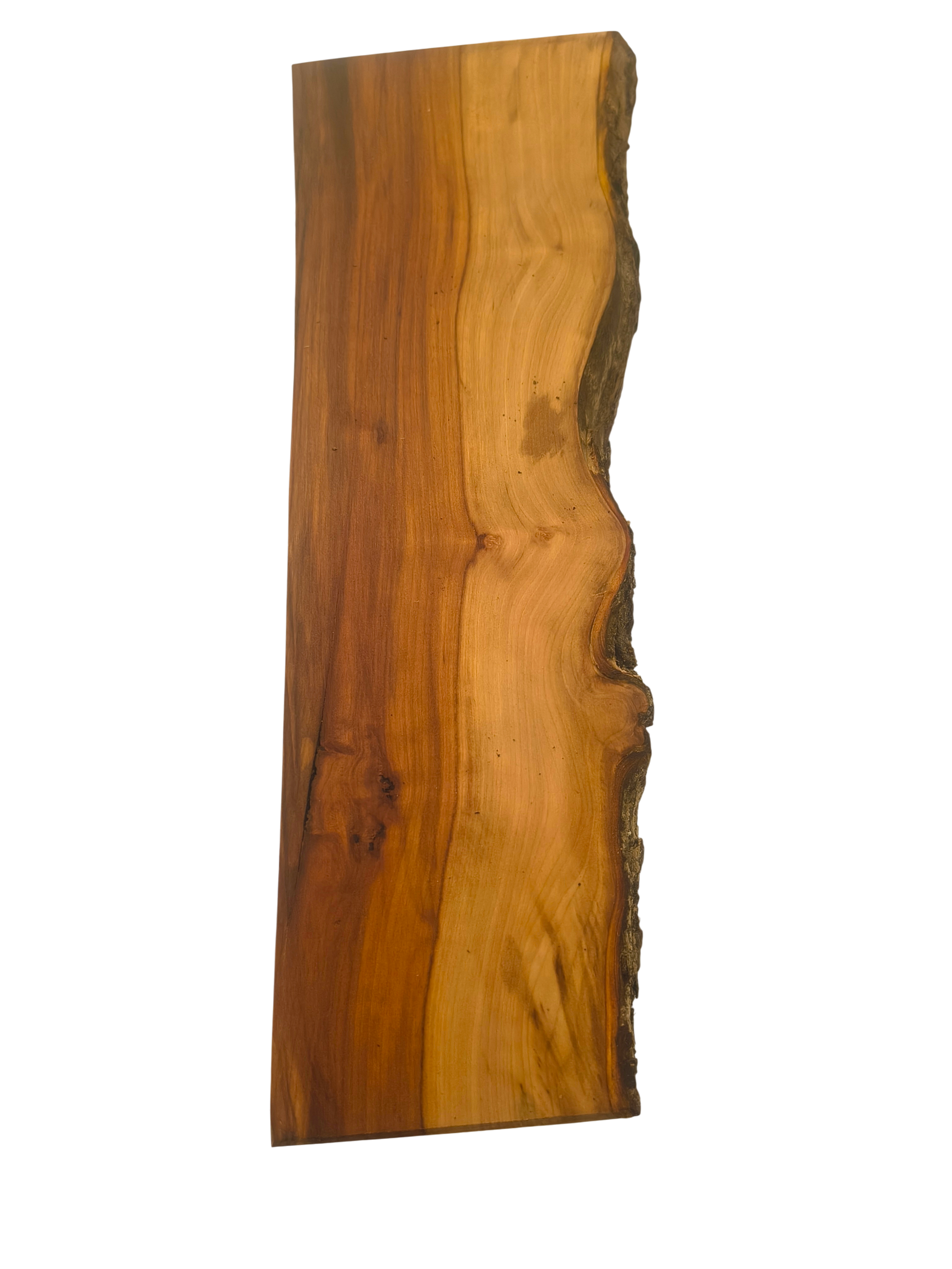 Deska wykonana z litego drewna jabłoni, pozyskana z jednego kawałka i suszona naturalnie przez 2 lata, aby zachować trwałość i piękno. Drewno jabłoni słynie z wyjątkowej twardości, a przy tym jest delikatne w obróbce – łączy w sobie praktyczność i subtelny, naturalny urok. Jego różowawo-brązowe odcienie i ciepłe usłojenie sprawiają, że każda deska staje się ozdobą kuchni i stołu.